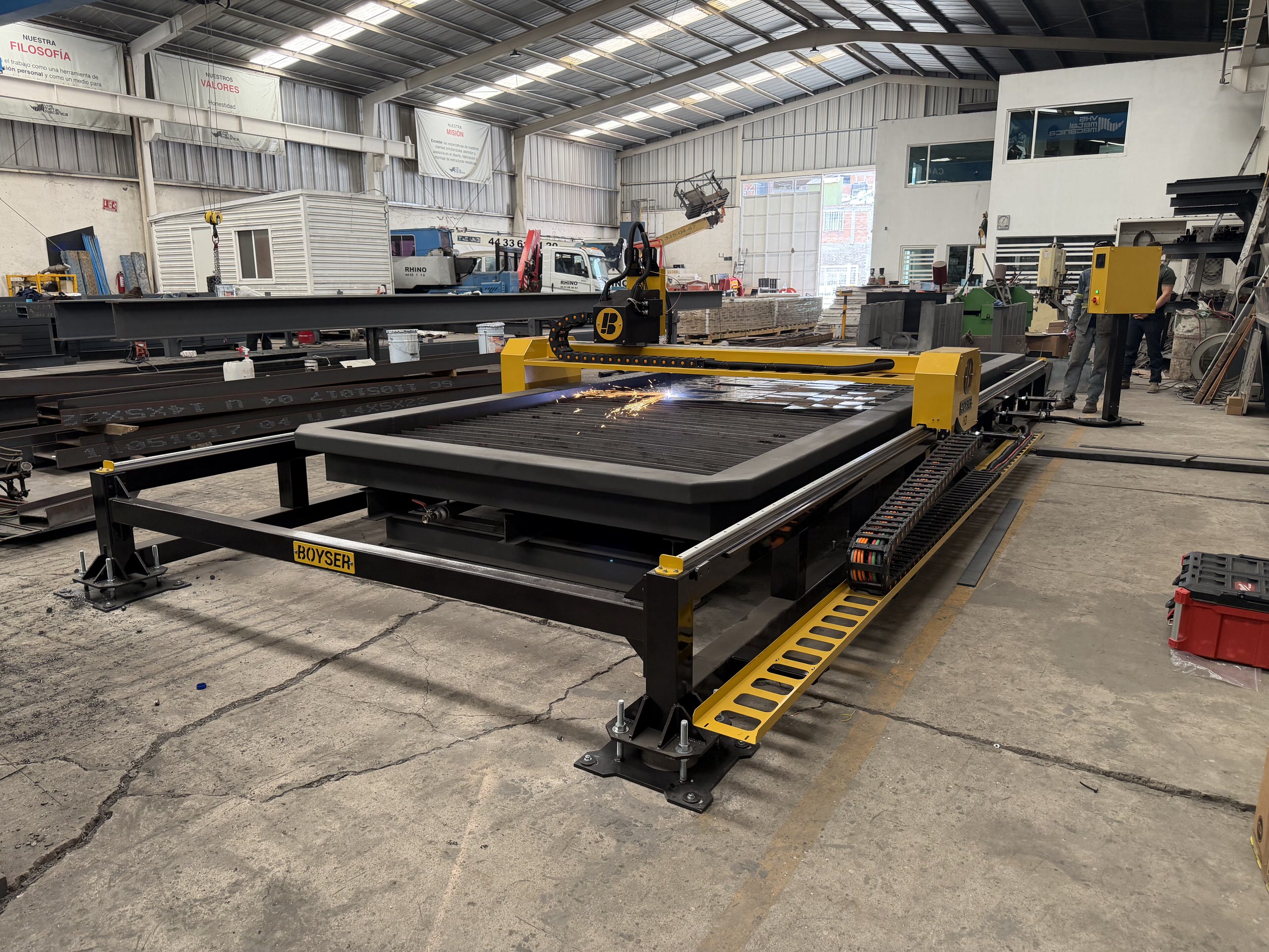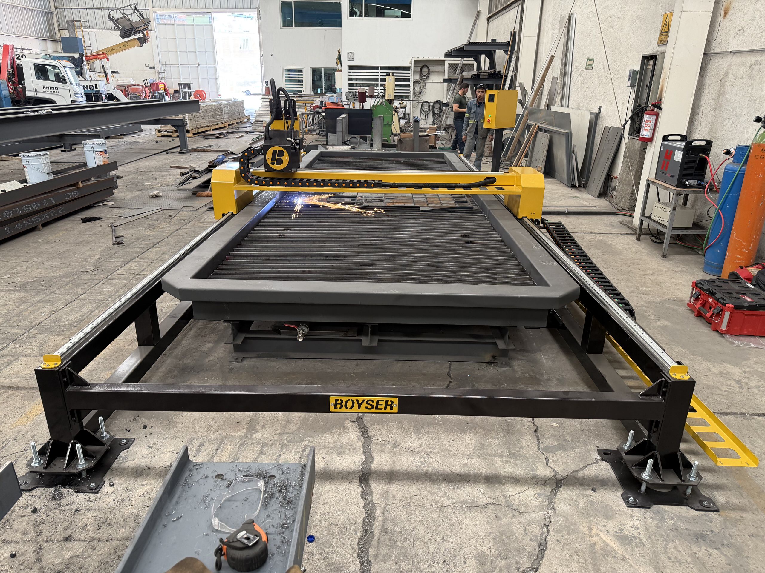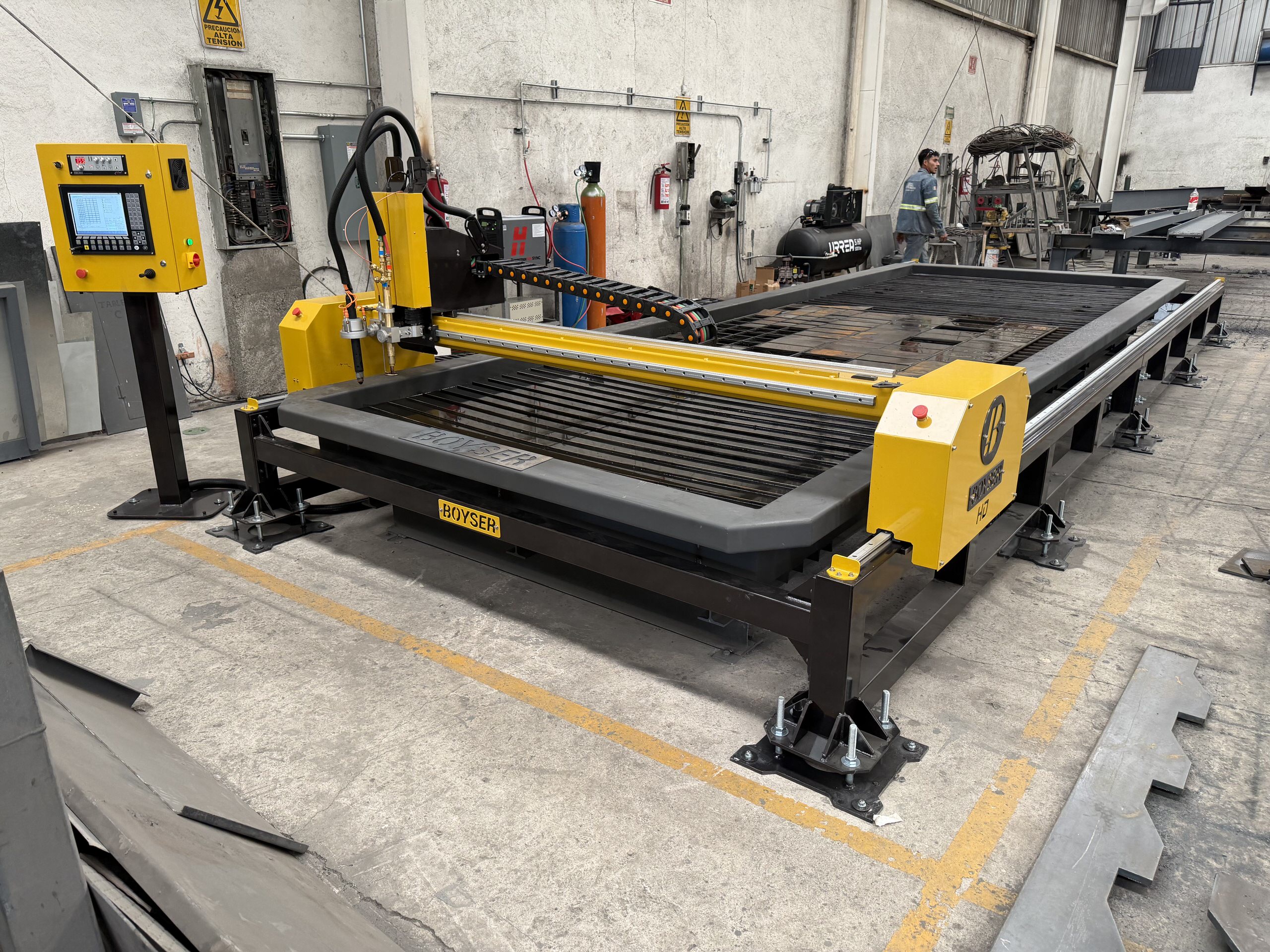 Mexicali, Baja California, México. Este cliente cuenta con un pantógrafo BOYSER HD con área de corte de 8×20 pies. Está equipado con una fuente de plasma modelo MAXPRO200 de la marca Hypertherm y un sistema de oxicorte BOYSER con control Ver más