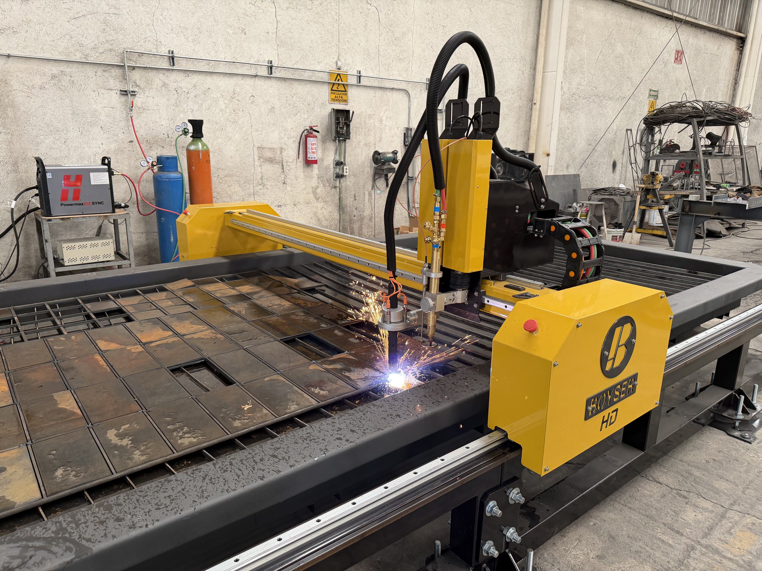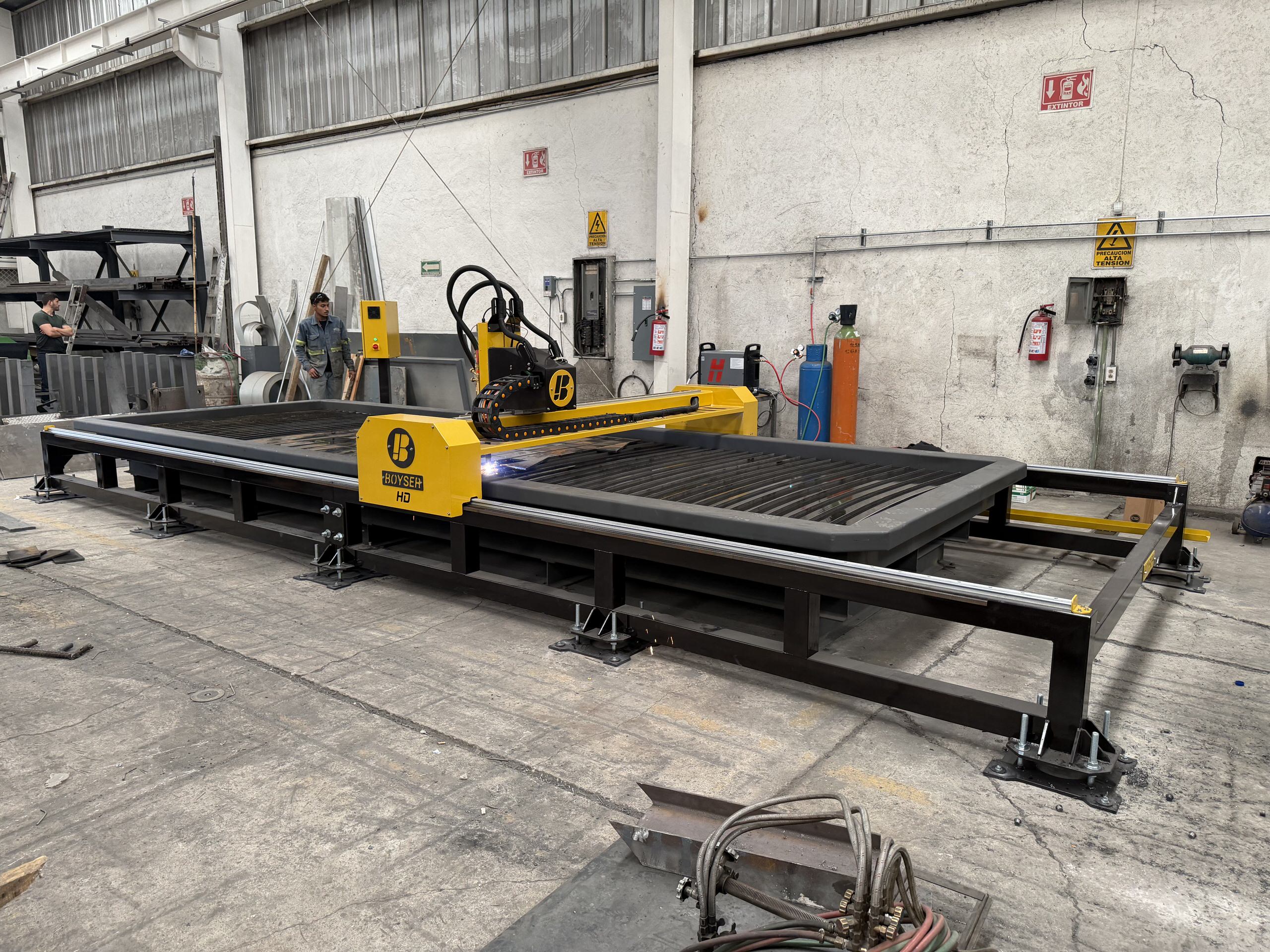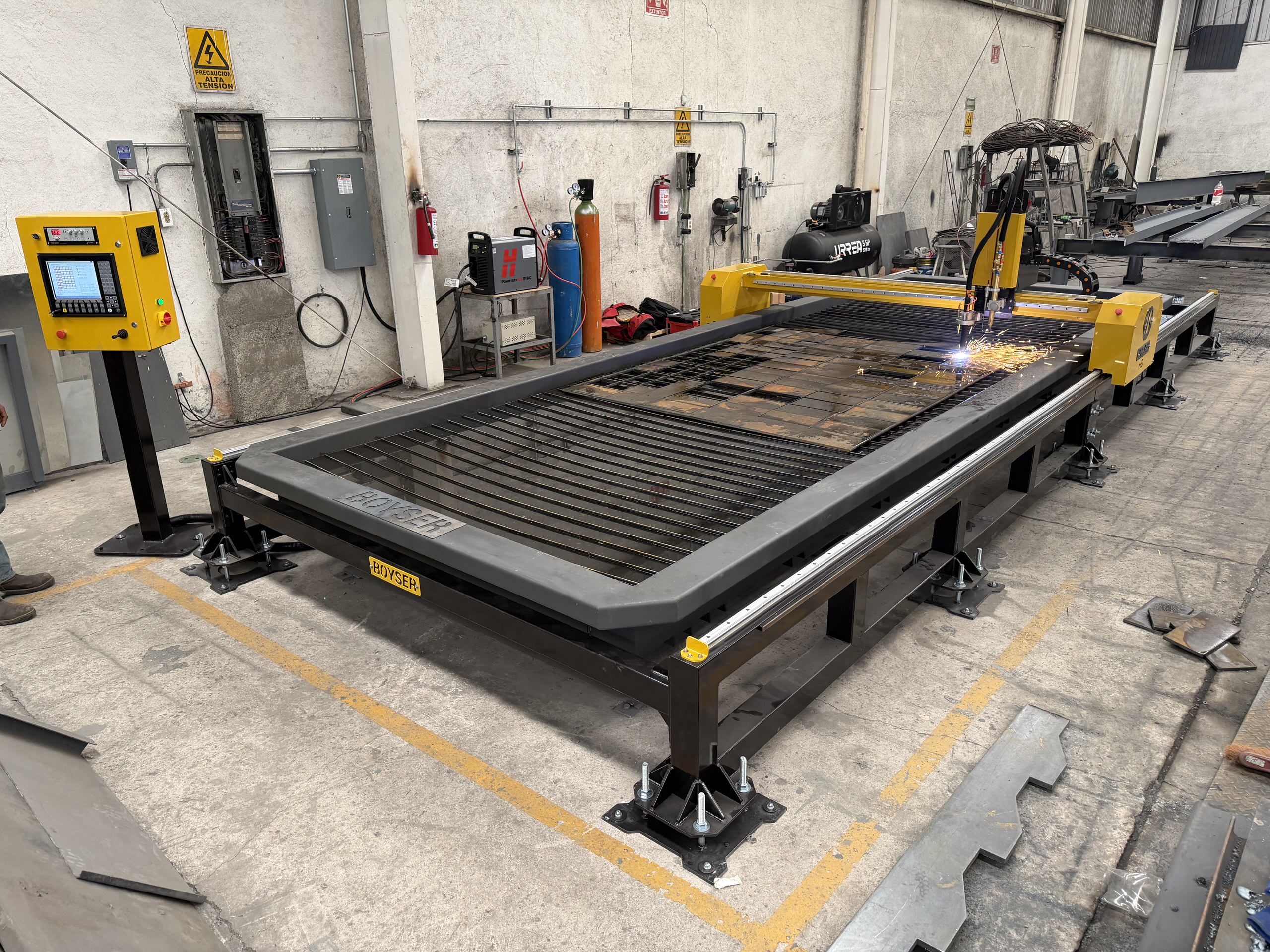 Mexicali, Baja California, México. Este cliente cuenta con un pantógrafo BOYSER HD con área de corte de 8×20 pies. Está equipado con una fuente de plasma modelo MAXPRO200 de la marca Hypertherm y un sistema de oxicorte BOYSER con control Ver más