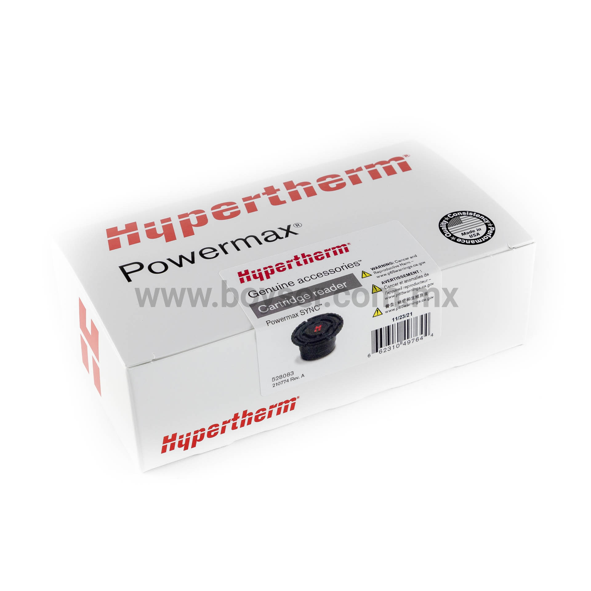 El lector de cartuchos Hypertherm funciona con la aplicación Powermax SYNC™ Cartridge Reader para ofrecer un proceso sencillo de revisión de los datos almacenados en los cartuchos Hypertherm. El lector se inserta en el cartucho y utiliza la antena de comunicación de campo cercano (NFC) de tu dispositivo móvil para transferir los datos del cartucho a la aplicación.